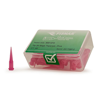 The Fisnar QuantX 8001272 Tapered Dispensing Tip Pink 20 ga is a smooth-flow economy dispensing tip engineered for reliable application of medium to high-viscosity fluids. Constructed from molded plastic with a uniform, flash-free design, it enables consistent and efficient dispensing of materials like epoxy, RTV, silicone, sealants, grease, and other adhesives. The pink hub identifies the 20 gauge size, and the standard length supports precise control and easy use with Luer lock syringes and dispensing systems.