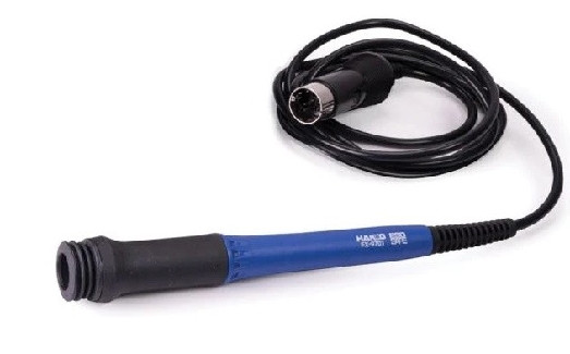 Hakkko FX9701-81 is a trowel-style soldering iron handpiece for use with FX-971, FX-972, and FX-973 stations. It features a 95 W heater for fast thermal recovery, low tip-to-ground resistance (<2 O), and low tip-to-ground potential (<2 mV), making it safe for ESD-sensitive electronics. Compatible with T39 series tips for various soldering tasks in electronics, electrical, and automotive applications.