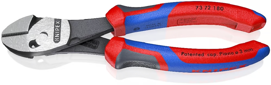 The KNIPEX 73 72 180 TwinForce® High Performance Diagonal Cutters set a new standard in cutting performance with their patented double-joint design. Engineered for professionals who require power, precision, and durability, these cutters deliver exceptional results even in the toughest cutting conditions. The unique twin hinge mechanism provides an optimal transmission of force, allowing users to cut hard materials such as steel tape or piano wire with significantly reduced hand effort and strain.