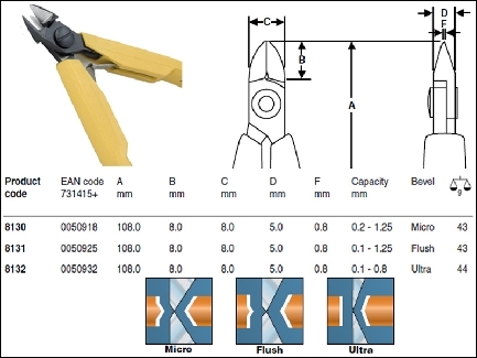 disturbing light reflections. For handy reference information, plier cutting capacity is printed