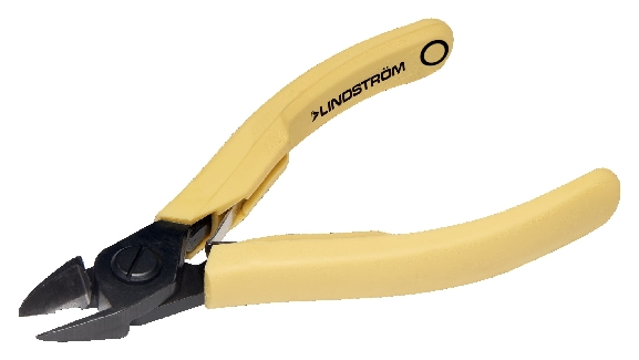 The Lindström 8150 Oval Head Micro-Bevel® Diagonal Cutter is a precision cutting tool designed for wire harness work and standard printed circuit board assembly. Made from high-performance ball bearing steel, its numerically controlled machine grinding ensures edge angle accuracy and optimal contact, increasing tool reliability and consistency. The cutter features ESD-safe synthetic handles with an opening spring for comfort and safety, and its cutting capacity is specified for copper wire.