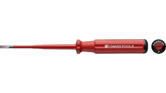 The PB Swiss Tools PB5100-3-100 is a precision-engineered VDE Insulated Slotted Screwdriver designed for electrical and industrial professionals who require both accuracy and safety. It features a 4 mm wide, 0.8 mm thick slotted tip and a 100 mm blade length, providing secure access to terminals and fasteners in live circuits. Tested to 10,000 V and certified for use up to 1,000 V AC and 1,500 V DC, this Swiss-made screwdriver combines durability, comfort, and superior insulation integrity. Its slim handle design and precision-machined tip ensure efficient torque transfer, safety, and ease of control during prolonged electrical work.
