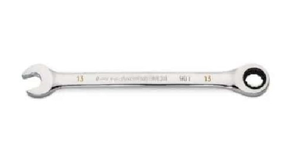 The GEARWRENCH 86913 is a high-performance 13 mm metric combination wrench that combines the efficiency of a ratchet with the usability of a traditional wrench. Featuring a 90-tooth ratcheting box end with a narrow 4° swing arc, it excels in tight spaces. Its longer, wider beam enhances reach and leverage, while large color-coded size markings ensure quick identification. Built with durable alloy steel and a full polish chrome finish, it is designed for toughness and longevity.
