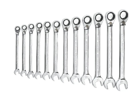 The GearWrench 9620N 12-piece reversible ratcheting combination wrench set is engineered for professional mechanics and technicians who need fast, efficient fastening. Featuring a reversible mechanism and a slim profile design, this set delivers superior access and speed when working in tight or hard-to-reach spaces. Built from durable alloy steel with a polished chrome finish, the set offers strength, precision, and long-lasting reliability.