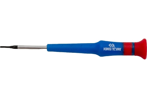 The KING TONY Slotted Precision Screwdriver 1.5 mm, 40 mm (14321515) is a professional-grade tool designed for precision work with slotted fasteners. It is ideal for dismantling, installation, repair of electrical and electronic equipment, and assembling circuit boards. The tool features a durable SNCM steel rod for long service life and a sturdy polypropylene handle for a comfortable grip. Its compact size and precision tip make it a reliable choice for technicians, craftsmen, and hobbyists.