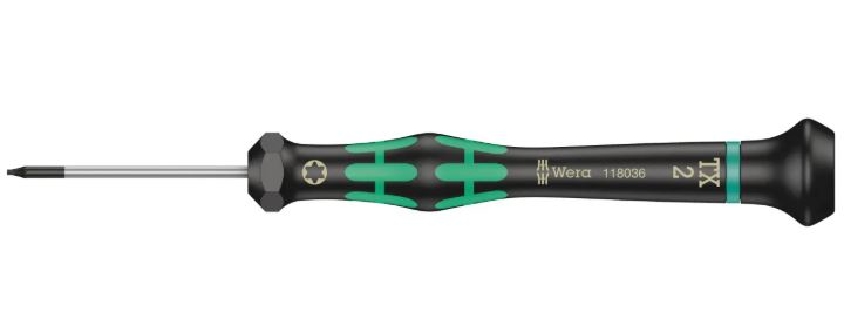 The Wera Precision Screwdriver, 40mm Blade, Torx T2 Tip (Part No. 118040) is a professional-quality tool designed for precise work with miniature Torx screws in electronic and fine mechanical applications. It is part of Wera’s renowned Kraftform Micro series, featuring an ergonomic handle that offers excellent control, comfort, and torque transfer. The screwdriver’s rotating cap and precision-engineered tip allow users to work efficiently in tight spaces, while its durable construction ensures long-lasting performance. Ideal for assembly, repair, and delicate component work, this tool provides accuracy and comfort for demanding users.