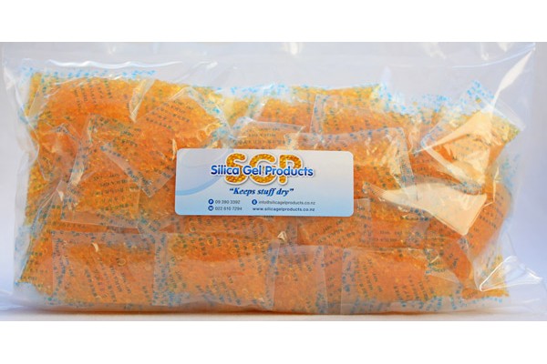 This is a 100 pack of 5 gram Indicating Orange Silica Gel sachets