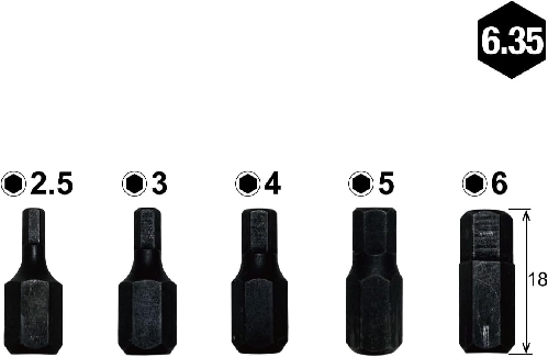 *Contents: Hex bits: 2.5mm, 3mm, 4mm, 5mm, 6mm; Bit holder