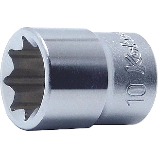 The Koken 2415M08 is a precision-engineered double square (8-sided) socket designed for use with 1/4" (6.35 mm) square-drive tools. Made in Japan, it features a compact 22 mm length and chrome-plated chromium-molybdenum steel construction, delivering reliable performance on square-head fasteners requiring precise alignment.