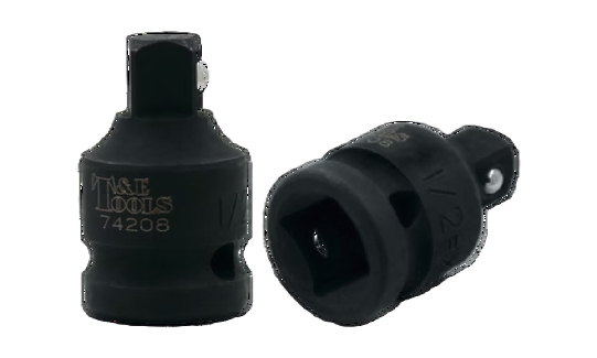The T&E Tools 74208 is an impact-rated adaptor that converts a 1/2-inch female drive to a 3/8-inch male drive. It allows users to use 3/8-inch sockets or accessories with a 1/2-inch impact wrench or driver. Constructed for durability under high torque and impact use, it is part of a range of adaptor tools from T&E Tools that support both reducing and increasing drive sizes under demanding workshop conditions.