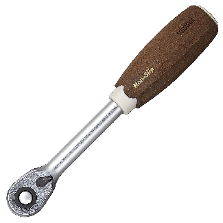 The VESSEL WOOD-COMPO Ratchet Handle is a professional-grade hand tool with traditional grip feel and contemporary functionality. Its wood-composite resin grip provides a non-slip surface, even in the presence of oil or grease. Engineered for durability, it incorporates wedge-shaped gears that ensure solid engagement with little skipping, resulting in long-lasting and effective operation. Suitable for users who require precision and ergonomic handling from their tools.